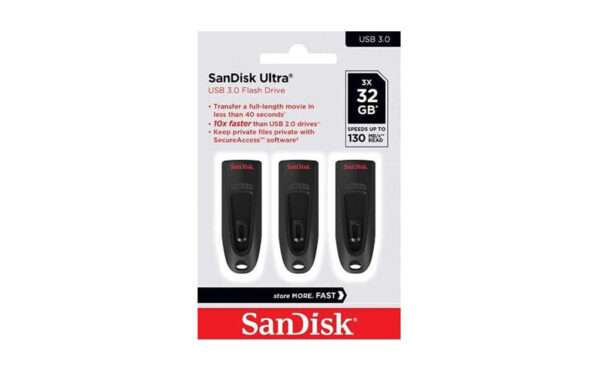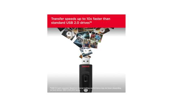 Offered in capacities up to 512GB, the SanDisk Ultra USB 3.0 Flash Drive can hold all your favourite media and important documents, including high-resolution photos, MP3s, movies, presentations, and graphic files.